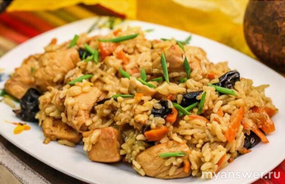 Как обычно, но ещё и по вкусу, самое главное нужно хорошо распарить сушёные фрукты (стандарт работы с ними), конечно не отдельно, а вместе с пловом. Это блюдо любит такой подход - чем больше распарится, тем лучше, ингредиенты в плове такие, что не теряют своих свойств от высокой температуры.