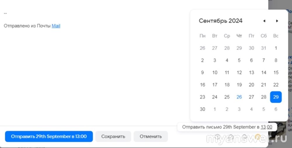 Нажимаем на него и там появляется надпись "Отправить письмо сегодня в ____ (время на часах)".