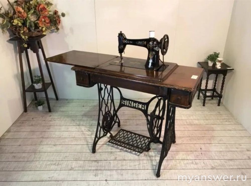 Ножные - Достоинства - Обе руки свободны, имеется стол на котором легче разместить сшиваемое, в сложенном состоянии ещё одна тумбочка в доме, возможность в тумбочке хранить полуфабрикаты шитья.