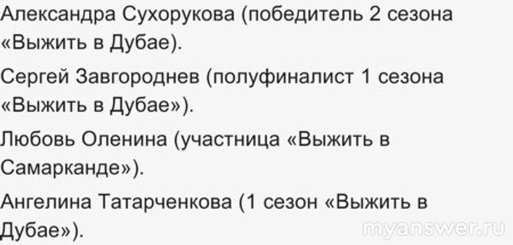 Совсем скоро на экранах телевизоров покажут новый сезон нашумевшего шоу "Выжить в Самарканде. Игра сезонов", но теперь нас ждет еще больше интриг, противостояний, споров и ругани. Все это обеспечат нам участники шоу. В этом сезоне мы увидим самых ярких участников предыдущих сезонов. Думаю они смогут сделать это шоу ярким: