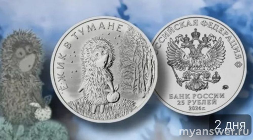 Слева сверху название монет "Ёжик в тумане".