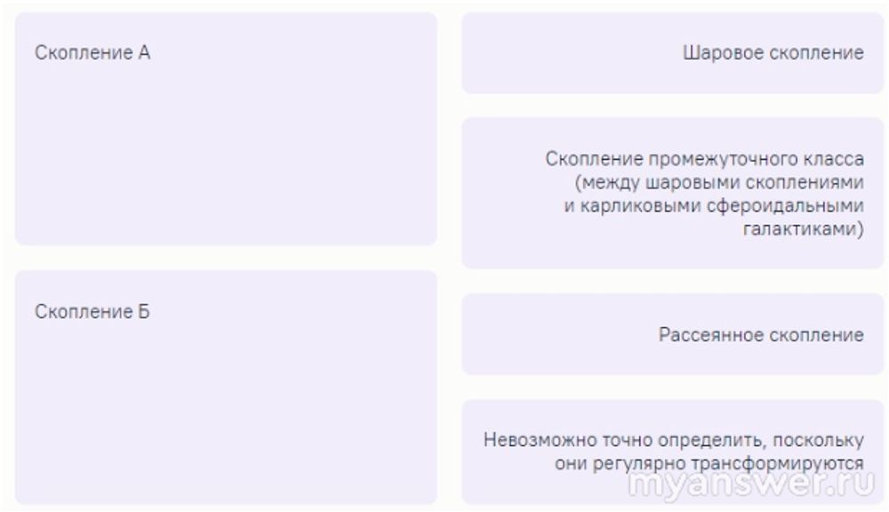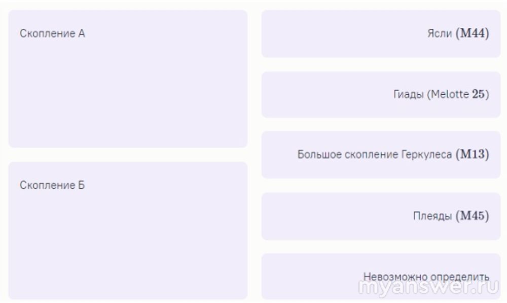 Теперь определим типы этих скоплений. Плеяды - Рассеянное звездное скопление, Большое скопление Геркулеса - Шаровое скопление.