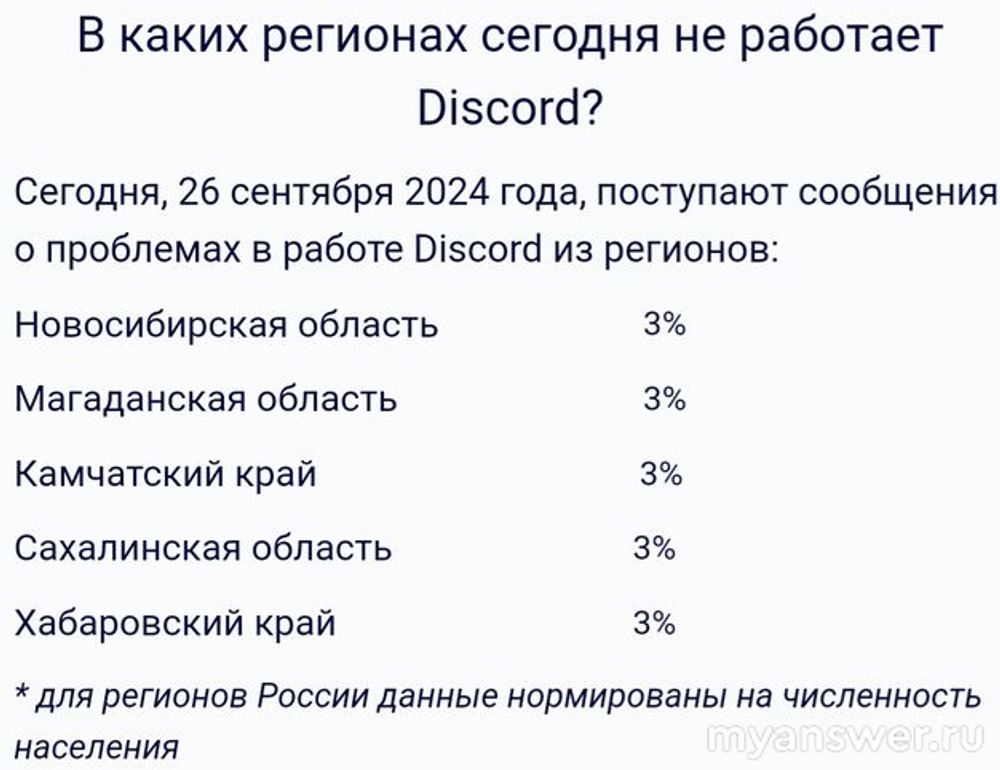 Несмотря на то, что указаны регионы, откуда пришла большая часть замечаний к работе Дискорд. Но на самом деле, нареканий было огромное множество практически со всех уголков России.
