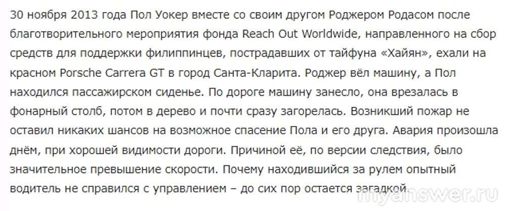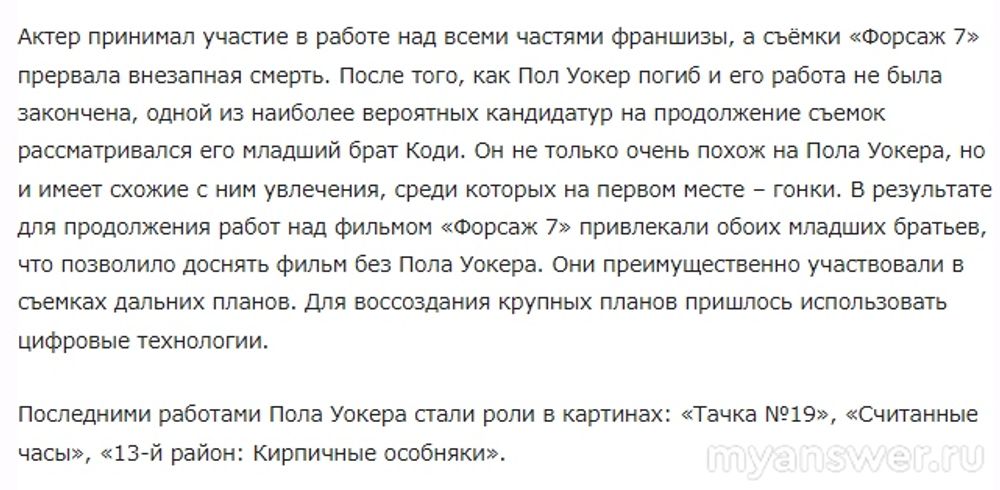 Пол Уокер погиб в автокатастрофе 30 ноября 2013 года, ему было 40 лет.