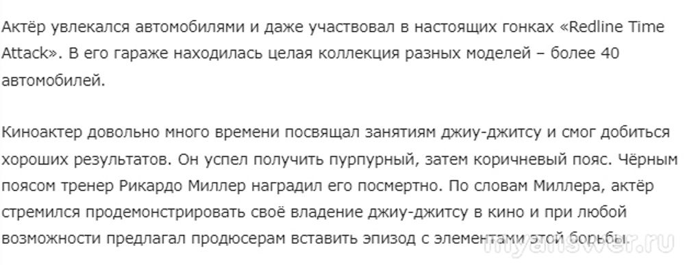 Всемирная известность к Ролу Уокеру пришла после съемок в фильме "Форсаж".