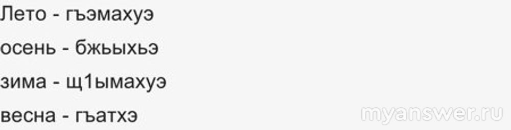 Четыре времени года - зима, весна, лето и осень по-кабардински будут так: