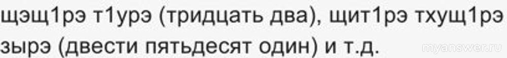 Интересно, что у числительного 50 еще один вариант - «щэныкъуэ», что означает половина сотни.