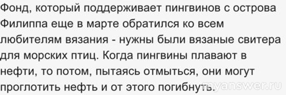 А правильным ответом на этот вопрос стал вот такой ответ: он вязал свитера для пингвинов (фото прилагается).