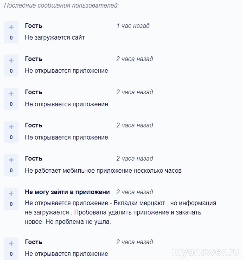 Поступает много жалоб на то, что невозможно открыть мобильное приложение, а также зайти в личный кабинет на сайте. Преимущественно негодования зафиксированы в Тверской области, Нижегородской области, Санкт-Петербурге и его области.