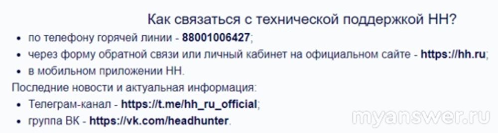 Но в любой ситуации у вас есть возможность пообщаться со службой поддержки hh по телефону