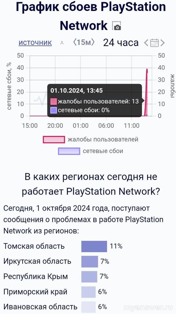 Не работает PlayStation Network сегодня 1 октября 2024, почему?