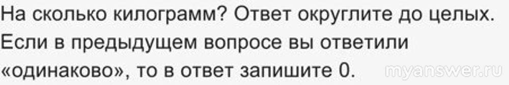 На сколько килограмм? Ответ округлите до целых. Если в предыдущем вопросе вы ответили «одинаково», то в ответ запишите 0.