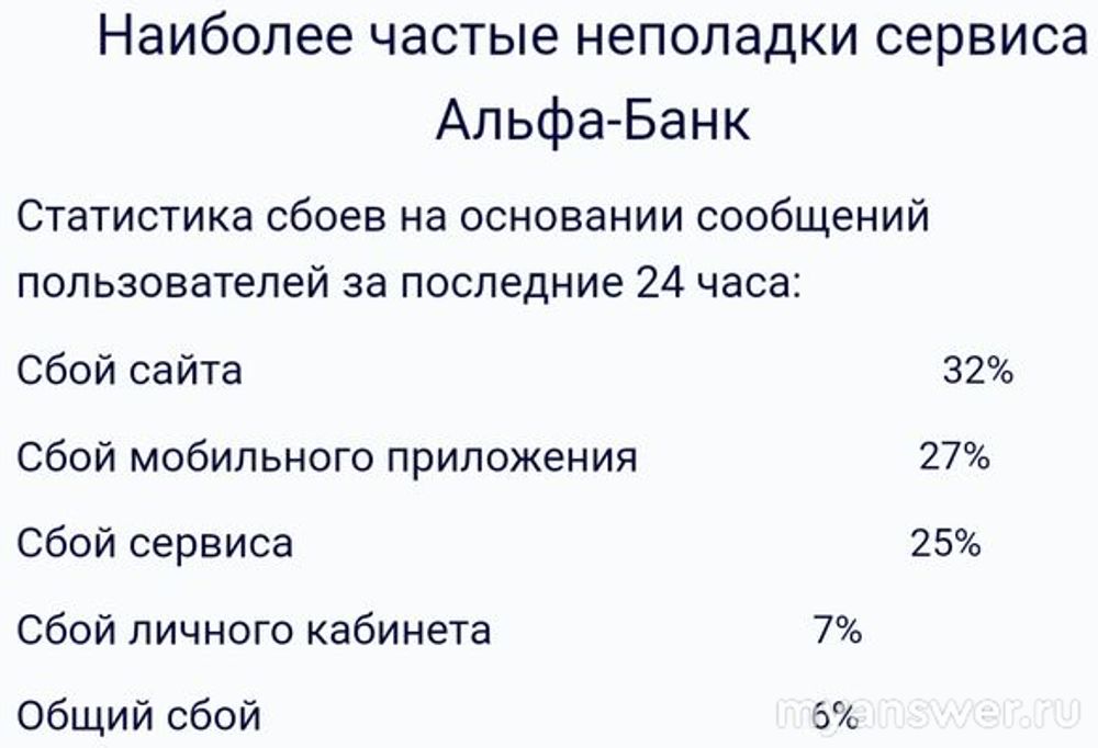 В ином случае попробуйте перезапустить сайт (приложение) Альфа-Банка и подождать, пока не устранят сбой.