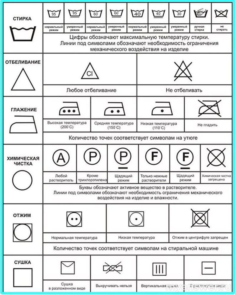 Очень часто вид ухода за тем или иным изделием из разных видов ткани указан на ярлыке данного изделия в виде специальных значков, несущих полезную информацию по уходу за изделием, или в виде текстового предупреждения по моментам ухода за вещью.