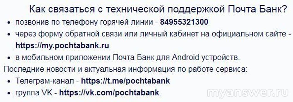 Если ошибки входа в приложение сохранились, то лучшим решением станет звонок по горячей линии Почта Банк