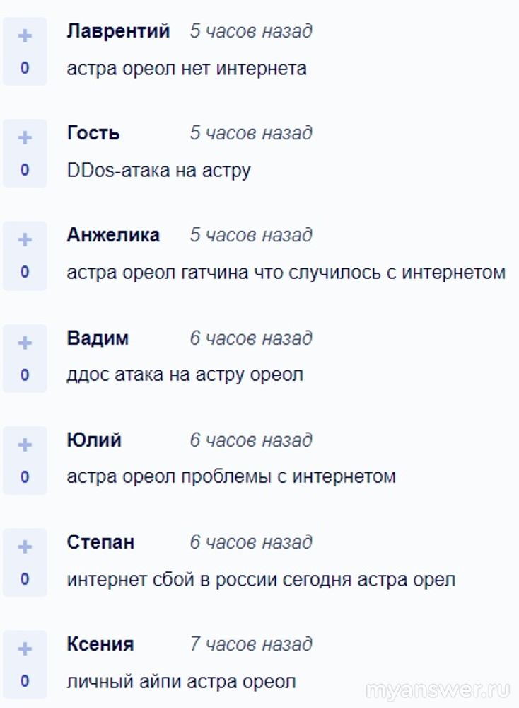 Третьего октября 2024 года провайдер "Астра-Ореол" оказывал услуги без каких-либо нареканий до 12 часов дня по московскому времени. С этого момента уровень сетевых сбоев стал просто зашкаливать. Также быстро появились жалобы на работу домашнего интернета от провайдера. Ситуация со всеми неполадками плавно перешла в четвертое октября.