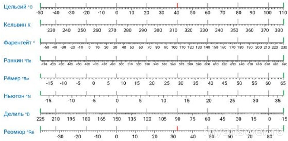 На рисунке совмещены разные температурные шкалы.