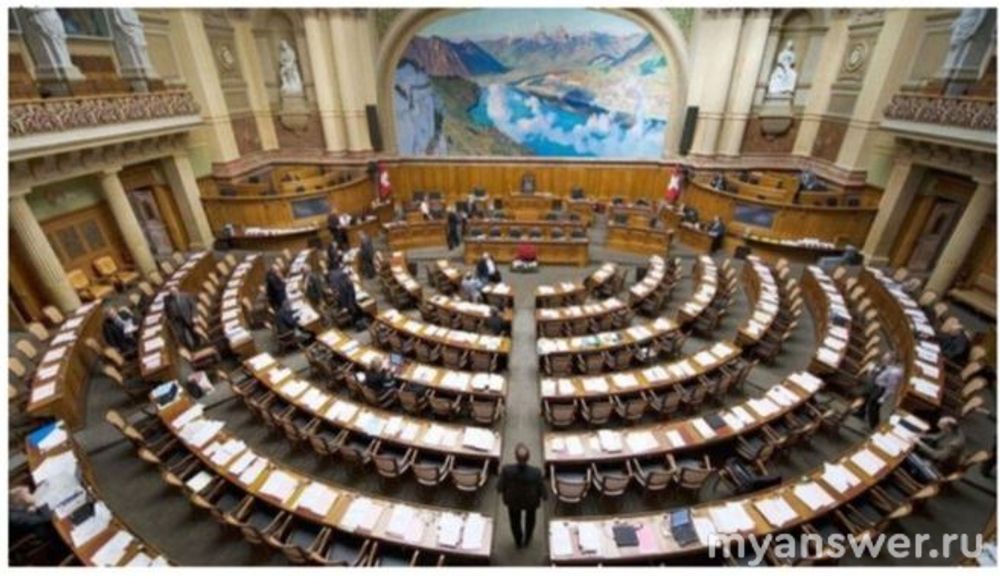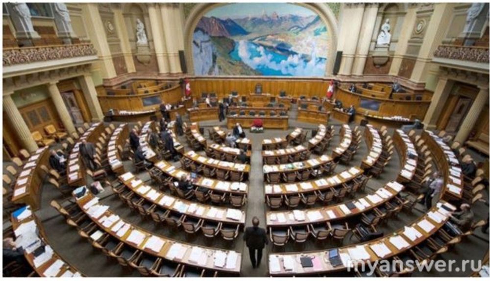 На фото изображен парламент Швейцарии, который выполняет законодательную функцию. И также, как и у нас состоит из двух палат: верхней и нижней.