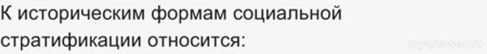 Правильным ответом станет вариант "сословия". Также следует учитывать, что в эту группу входит еще три типа: классы, касты и рабовладение.