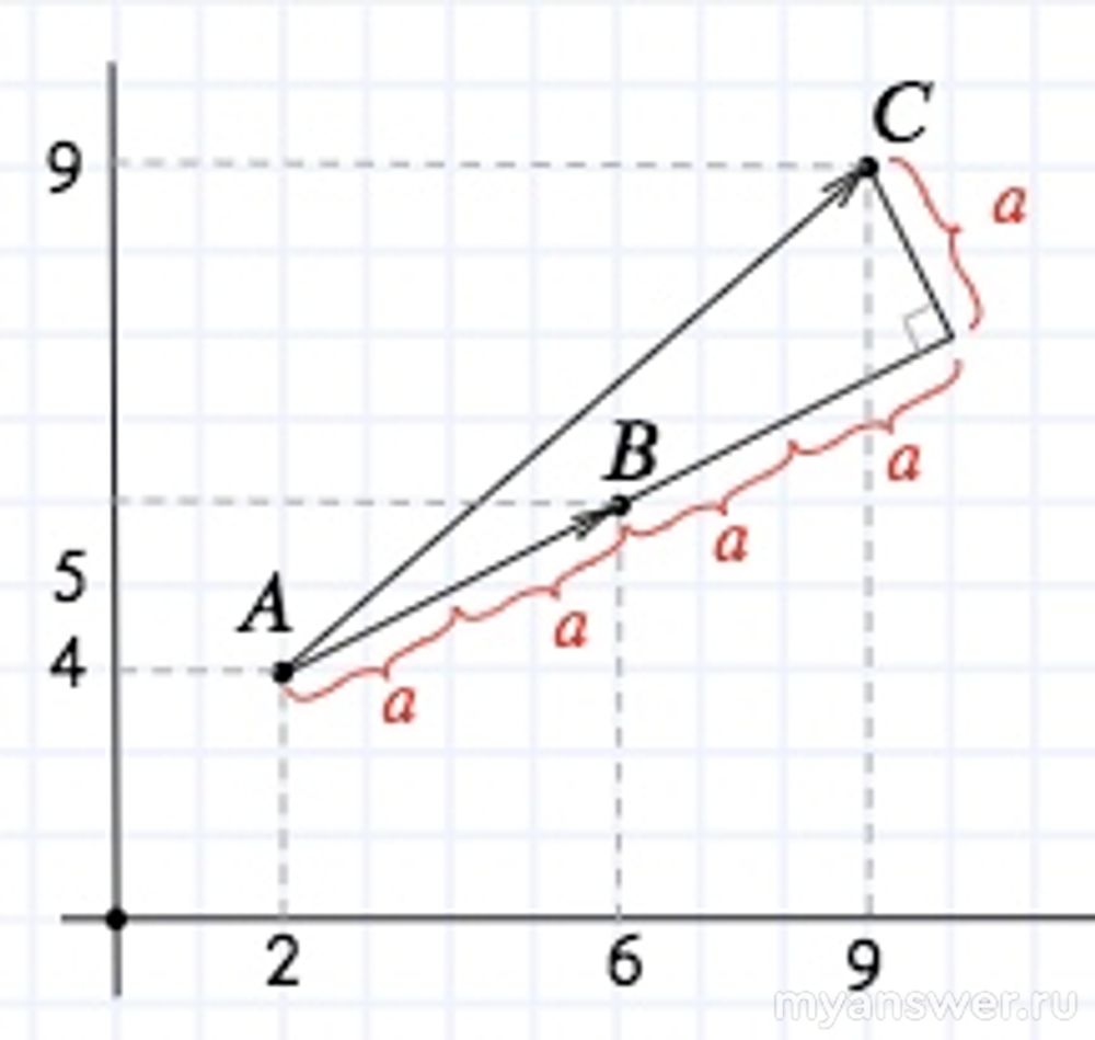 И из рисунка, если продлить AB в 2 раза, чтоб получить ровные узловые клетки. То увидим прямоугольный треугольник