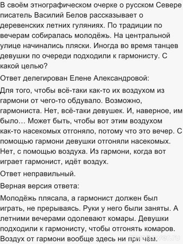 Игра 6 октября, первая в осенней серии была интересной, драматичной и протекала спокойно не смотря на драматизм. Команда Андрея Козлова вела в счете. Счет был 5:1. Казалось победа в кармане. Но один не верный ответ, второй, потом супер блиц, который не смог выиграть Скипский. И выпал вопрос об эпизоде описанном в книге Василия Белова. Нужно было ответит почему к гармонисту в северной деревне подходили одна за другой девушки. Отвечала Елена Александрова. Эх, не сиживала она по вечерам летом на улице. Не осталась у нее воспоминаний о комарах, от которых приходится отбиваться. А ведь гармонист играет и делать это не может. Вот девушки по очереди и отгоняли от него комаров. Елена осталась в плену своей версии об обдуве от мехов гармони. А жаль. Счет стал 5:5.