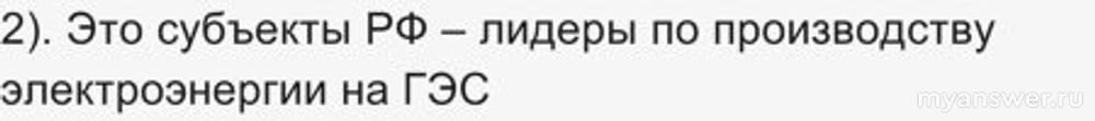 А вот общим признаком для всех данных регионов является производство электроэнергии, поскольку на реках построены гидроэлектростанции: в Красноярском крае каскад ГЭС на Енисее, в республике Хакасия - две, в Иркутской области - четыре, в Самарской области - две. Поэтому выбираем правильный ответ -
