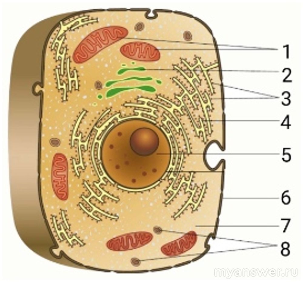 Артём прав, но частично: на рисунке клетка растения, потому что есть оболочка (обозначена цифрой 6), но функцию фотосинтеза клетка не выполняет, так как хлоропласты (обозначены цифрой 1) красного цвета, значит, хлорофилла в них нет
