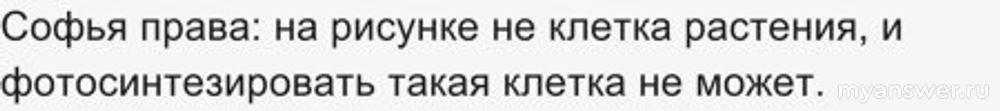 Я тоже сразу увидела, что это не растительная клетка, несмотря на оставшиеся в моей голове весьма небольшие познания в биологии, но я довольно много отвечала на школьные вопросы и представляю, как выглядит растительная клетка. И исходя из этого только один ответ нам подходит, потому что Софья права полностью: