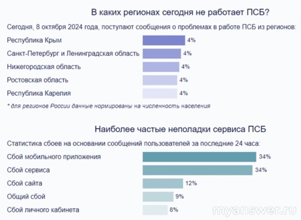 Сегодня 8 октября 2024 года с утра произошел сбой в работе Промсвязьбанка.