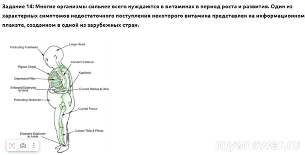 Многие организмы сильнее всего нуждаются в витаминах в период роста и развития. Один из характерных симптомов недостаточного поступления некоторого витамина представлен на информационном плакате, созданном в одной из зарубежных стран.