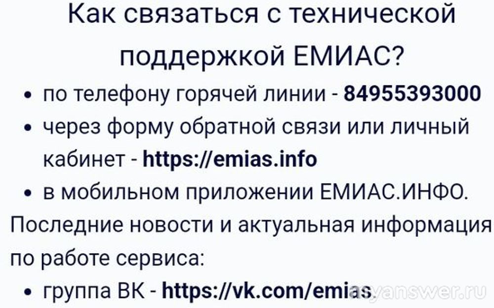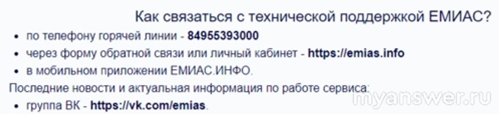 Также пробовать обращаться по номерам и адресам для связи с технической поддержкой ЕМИАС что расположены ниже: