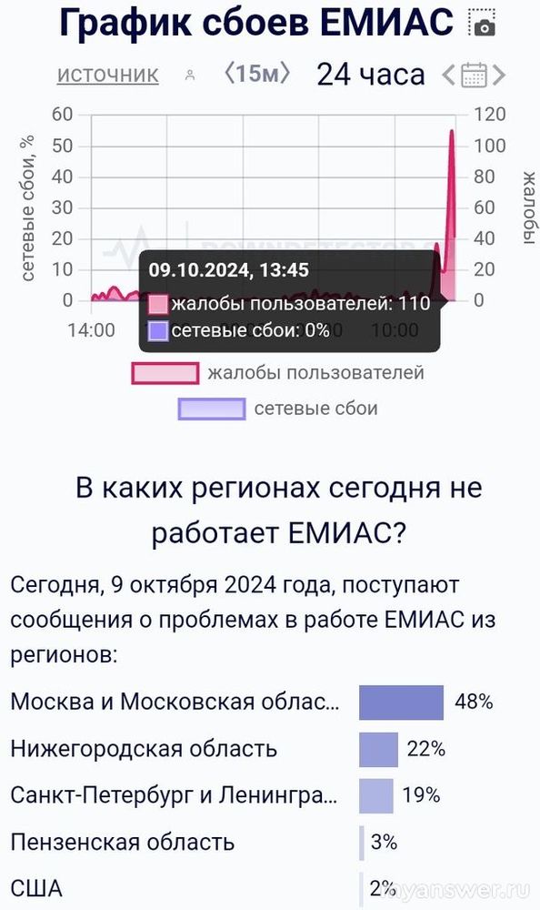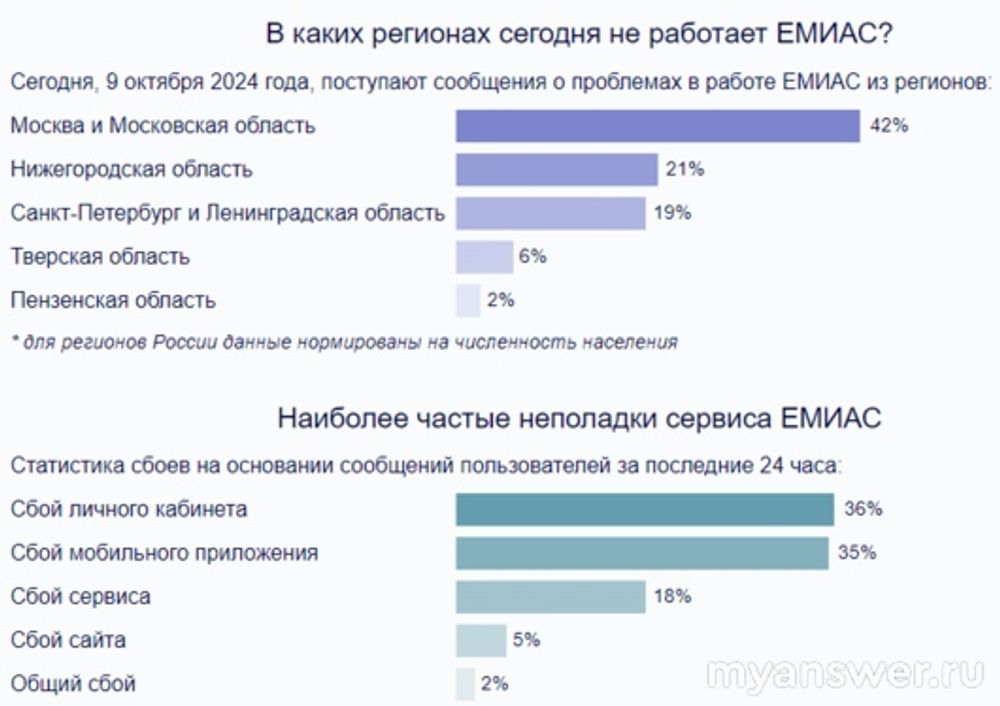 Сегодня с утра 9 октября 2024 года произошёл сбой сервиса ЕМИАС.