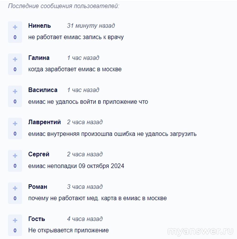 На фоне повышенного количества различных технических сбоев, днëм в среду, 9 октября 2024 года, резкие технические проблемы начались у системы "ЕМИАС", через которую москвичи и гости российской столицы достаточно часто записываются к различным врачам. Рабочие серверы данной системы не выдержали повышенной нагрузки, и у неë случился операционный сбой. Через некоторое время там всë должно будет восстановиться, а пока можно обратиться в техническую поддержку системы "ЕМИАС".
