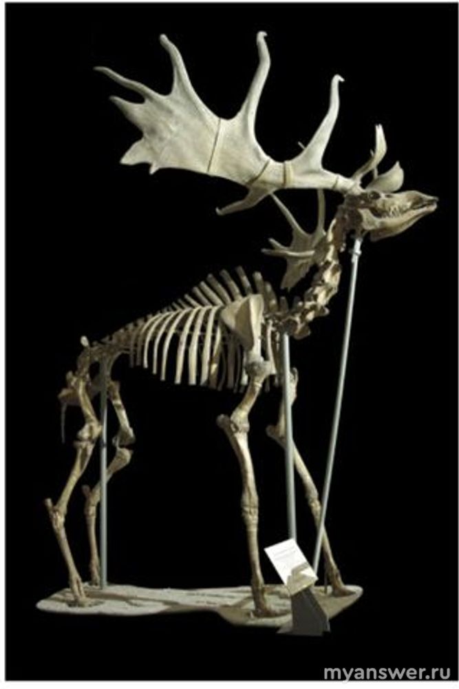 Дано изображение скелета самца ископаемого представителя семейства оленевых большерогого оленя (Megaloceros giganteus) из плейстоцена и раннего голоцена. В результате какого эволюционного процесса для самцов данного вида стали характерны огромные (до 4 м в размахе) рога?