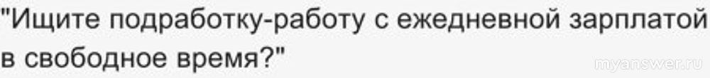 "Ищите подработку-работу с ежедневной зарплатой в свободное время? Mы можем Baм предоставить такую возможность. Скoрee откликайтесь и наш менеджер подробно расскажет про вакансию.