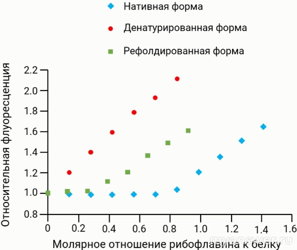 Денатурированная форма белка не связывает рибофлавин