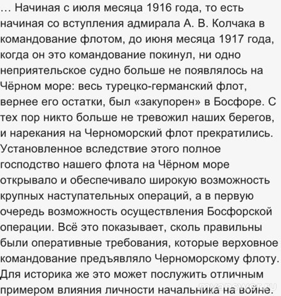 Но по любому русские оставались хозяевами в Черном море. До самой революции. И Гражданской войны. Царский адмирал Бубнов А. Д. в своих воспоминаниях так оценивал Колчака: