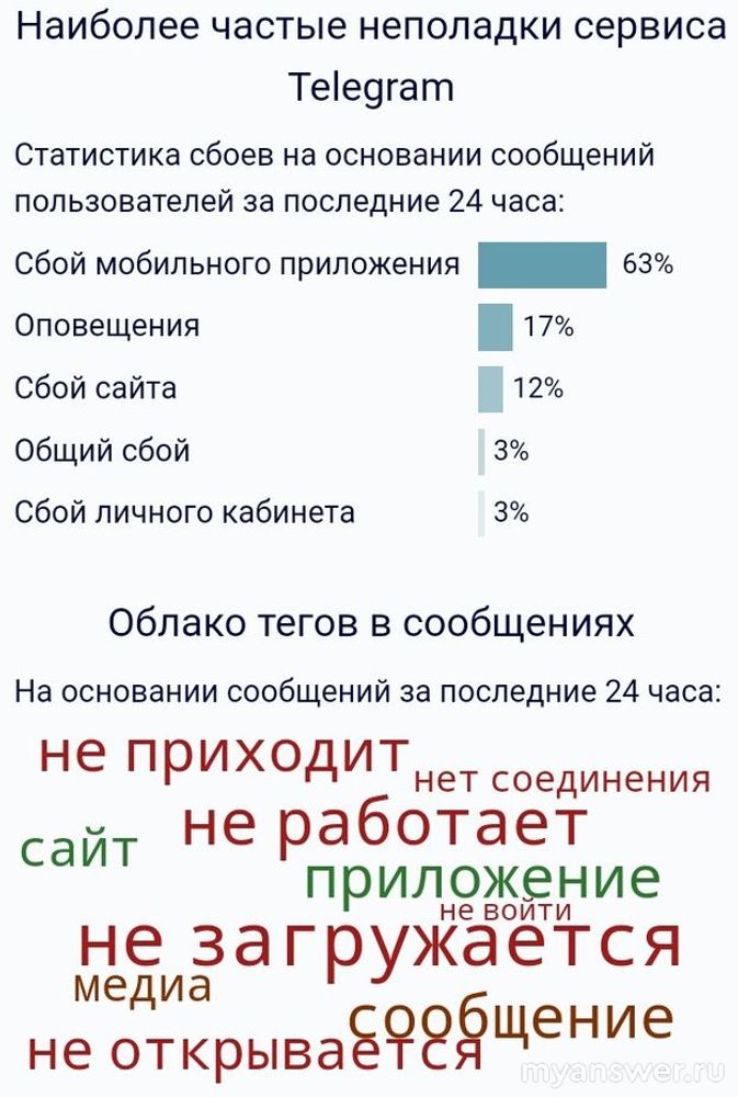 Перебои в ночь с 10 на 11 октября 2024 года действительно были и продлились почти до утра до 6 часов. В настоящий момент сбоев у телеграма нет, при чем ночью сообщают что телеграм мог работать только используя ВПН сервисы и то не у всех. Все это конечно выглядит крайне странно, сейчас недавно и Дискорд заблокировали, могут и телеграм заблокировать по той же причине. А вообще уже как месяц телеграм может давать сбои, иногда захожу В хамстер комбат и нажимаю на прокачку карточки и выдает что телеграм не может загрузить ее, а потом через пару часов снова нормально работает.
