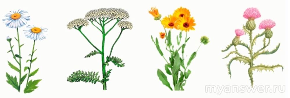 Но не стоит на этом останавливаться, читаем внимательно описание, там еще есть про листья, и смотрим на картинку, вот у ромашки листья цельнокрайние, а у календулы нет, у нее слегка зубчатые листья. Поэтому ответ: у ромашки (первая слева).
