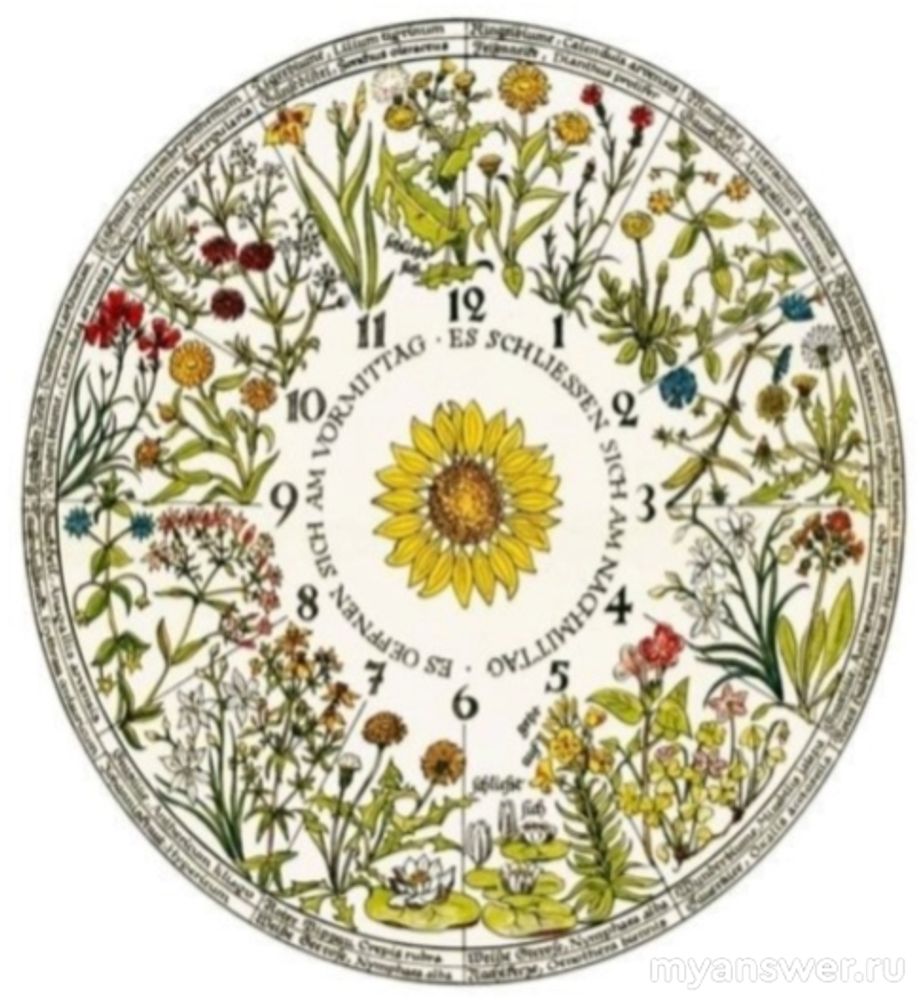 Карл Линней оказался человеком наблюдательным. Ему удалось заметить, проанализировать, сравнить и сопоставить цветение растений разных видов. Оказалось, что свои бутоны цветы раскрывают не просто так, когда захочется, а в определенное время. Время цветения тоже ограничено по времени, поэтому Линнею удалось создать так называемые цветочные часы.