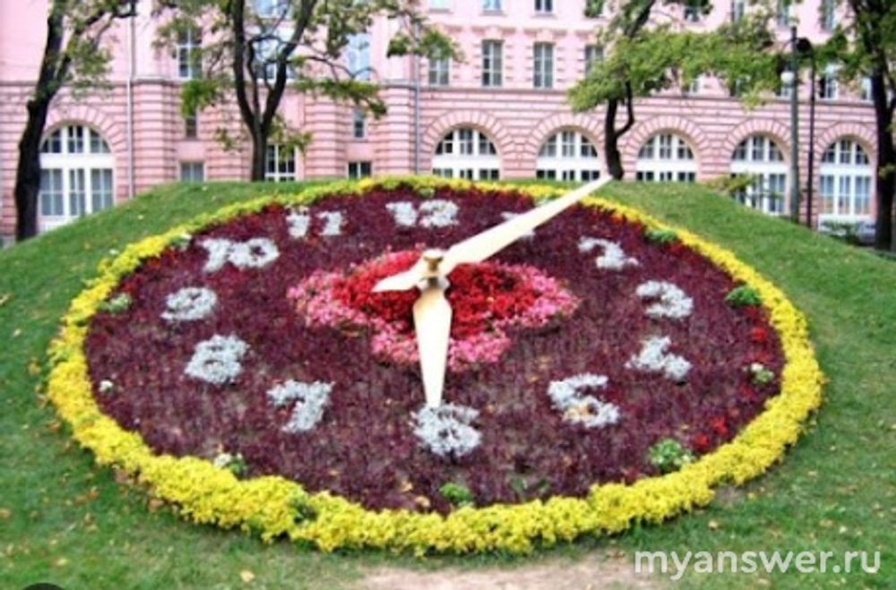 Циферблатом являются цветы, высаженные в определенной последовательности.