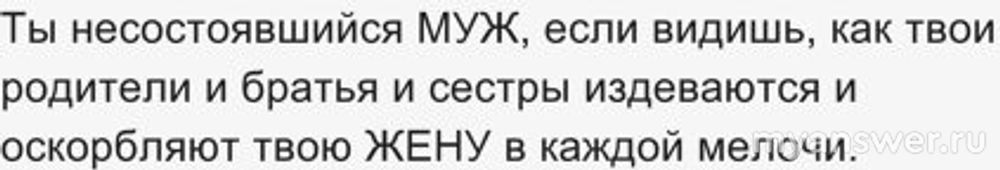 Там ещё много пунктов. Но если такое было и ваша мама видит в невестке ресурс, как и вы, то это жену удручает.