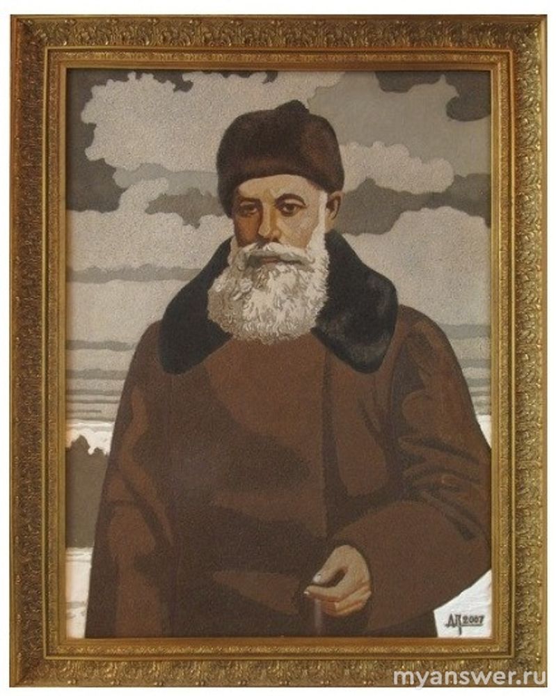 В одном из музеев г. Санкт‑Петербурга хранится портрет выдающегося учёного России, который выполнен в оригинальной технике без использования традиционных красок.