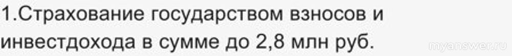 Страхование государством взносов и инвестдохода в сумме до 2,8 млн руб.