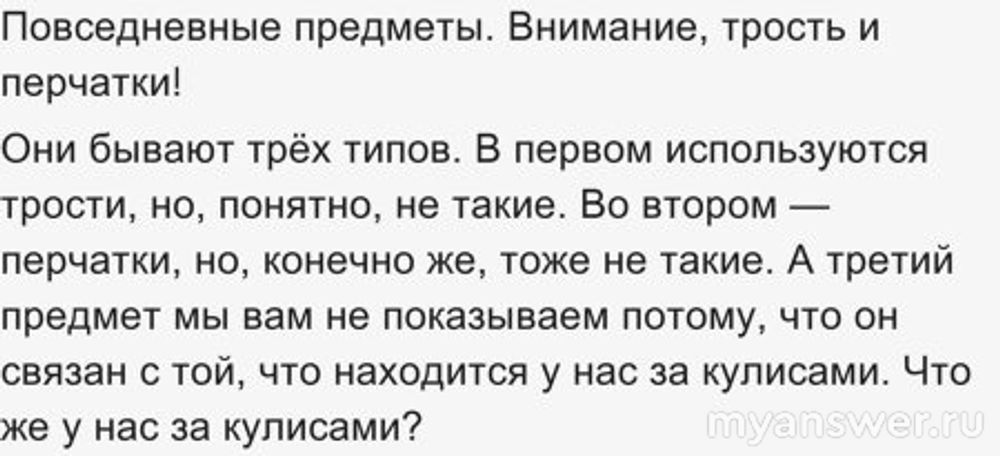 С тростью и перчатками связаны куклы-марионетки. И Элькис дал тот самый ответ. Старалась команда опередить себя. Но это интересная игра. Капитан команды сделал, что смог. Но потом будут подробности последнего вопроса.