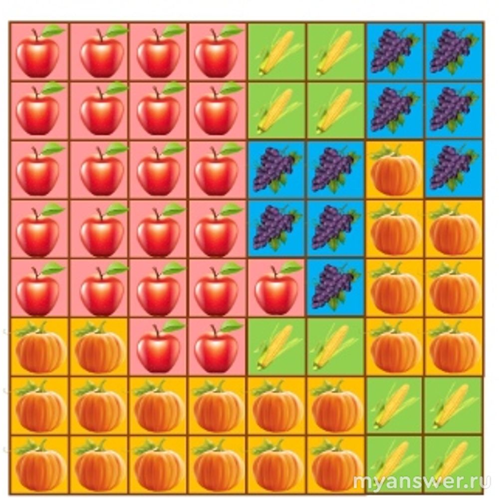 На квадратном поле 8×8 растут сельскохозяйственные культуры так, как показано на рисунке.