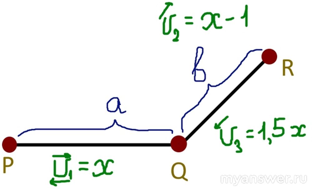 Пускай для начала отрезок PQ = a; отрезок QR = b. Величи́ны a и b измерять мы будем в километрах.