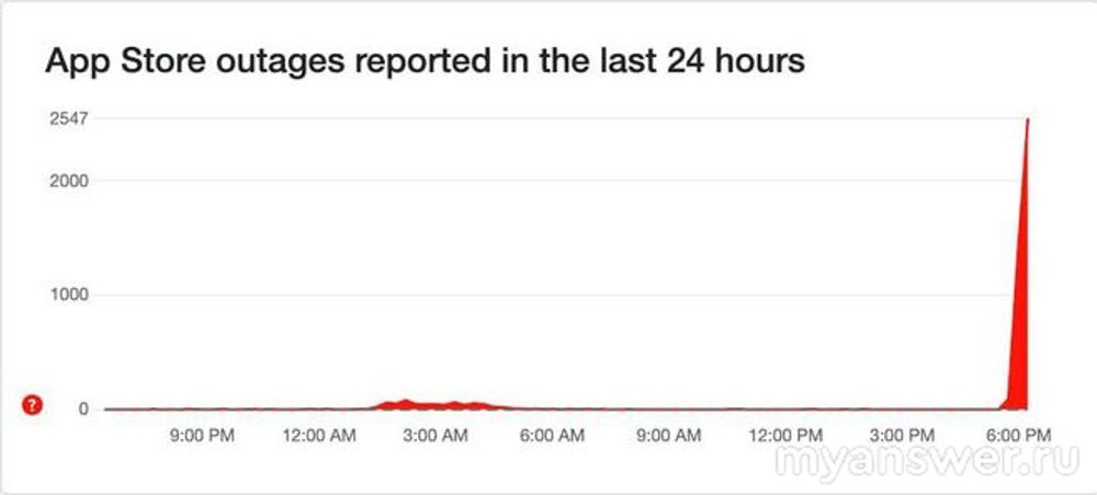 Вчера вечером 16 октября у App Store случился масштабный сбой, это было видно на сайте Downdetector.