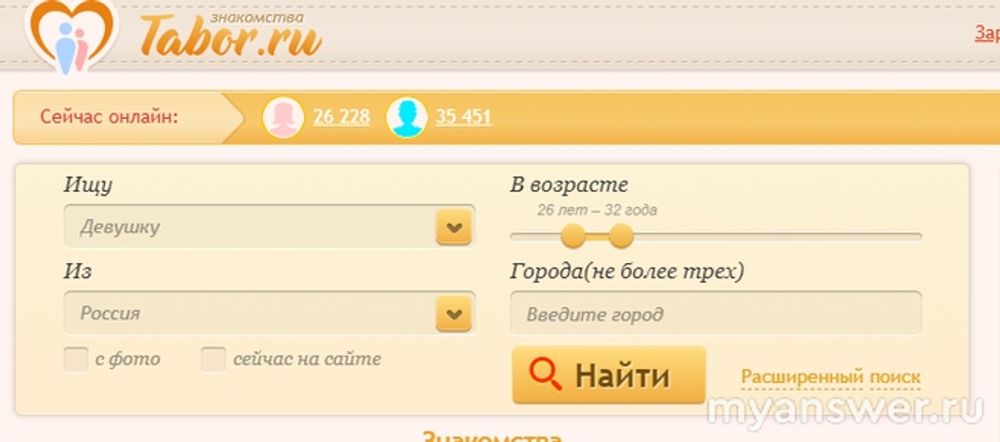 Если Вы заходите с персонального компьютера, то тут всё довольно просто - проходите по главной ссылке данного сайта знакомств и выбираете по параметрам нужного Вам человека. Иногда Вас автоматически может перебрасывать на адрес для мобильной версии - вот этот. В таком случае просто набираете ручками - tabor.ru и нажимаете кнопку Enter. Например, вот ссылка для поиска девушки 25-35 лет из Нижнего Новгорода, с фотографией в анкете и находящуюся онлайн - ссылка.