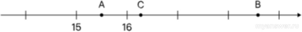 Точка C находится между отметками 16 и 17, но не ровно посередине. Она ближе к отметке 16. Значит, координата точки C равна 16,3.
